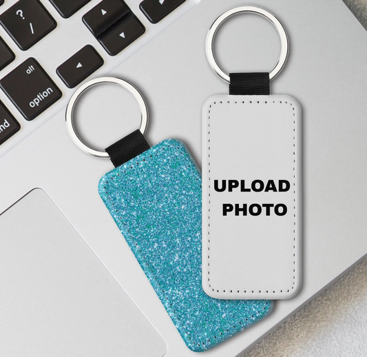 Rectangle Glitter PU Leather Key Chain