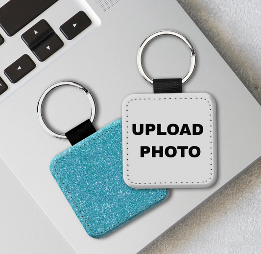 Square Glitter PU Leather Key Chain